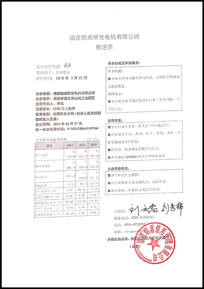 福建凱威斯發電機有限公司 XDPJ201803212